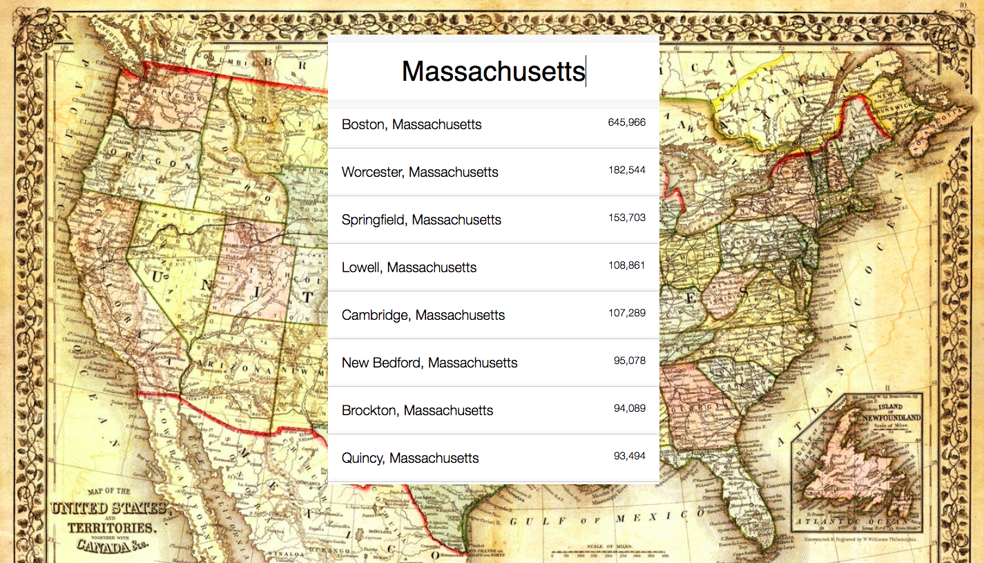 This is an app that I built using a city search API that returns a JSON promise based on all US cites and the cities population. The user can input a city and get its population or a state that will show all of the states cities and populations of those cities.